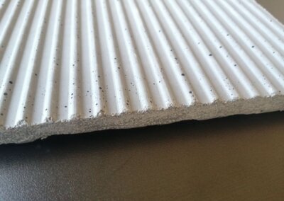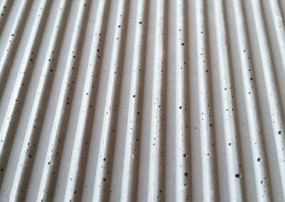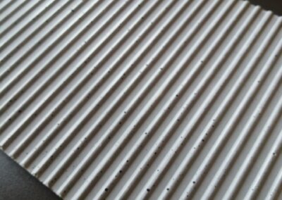 Oferujemy okładziny / płyty z betonu architektonicznego o powierzchni strukturalnej na bazie standardowych odcisków takich jak np. ryfle, oraz indywidualnych wzorów na zamówienie Klientów